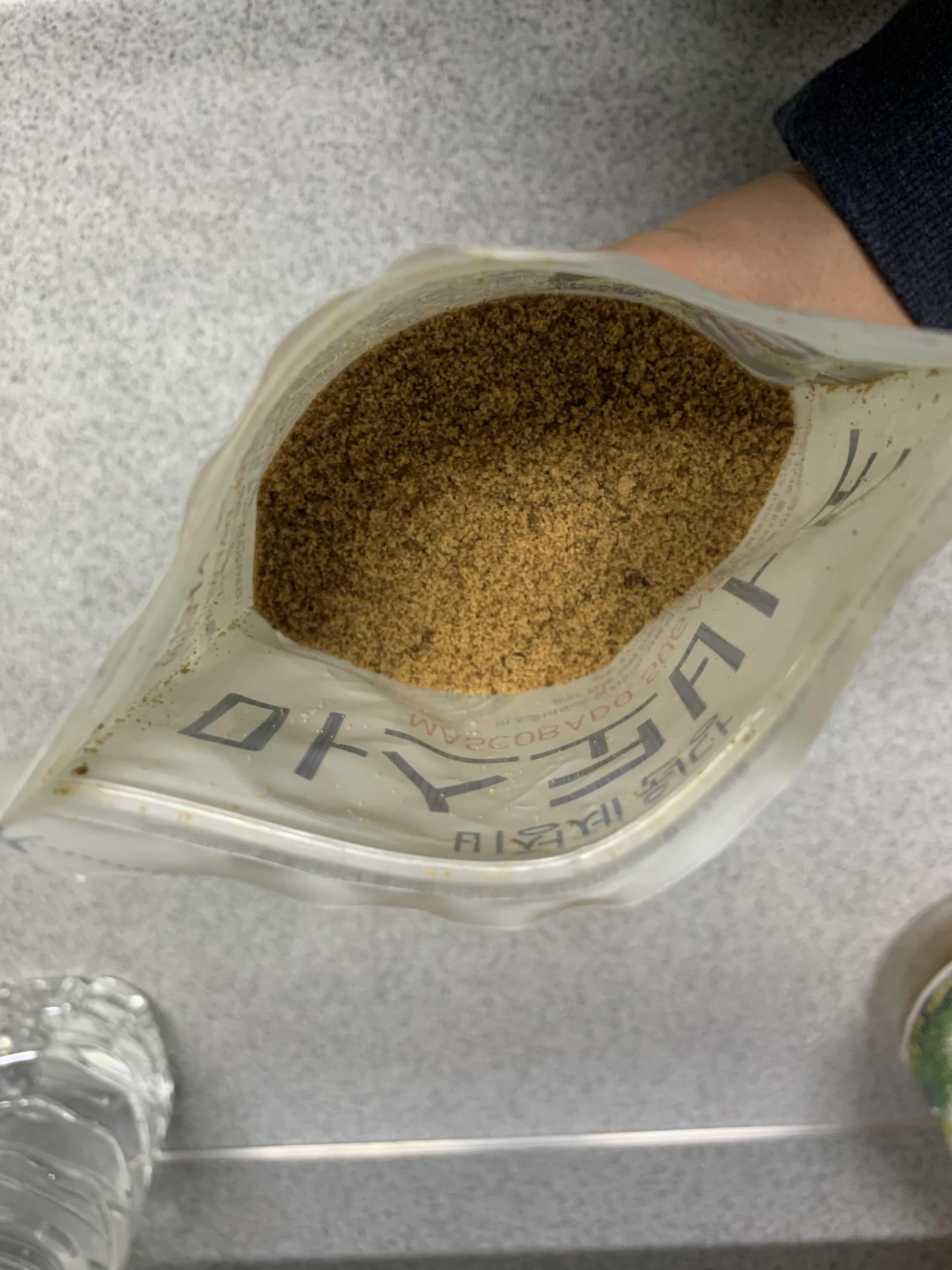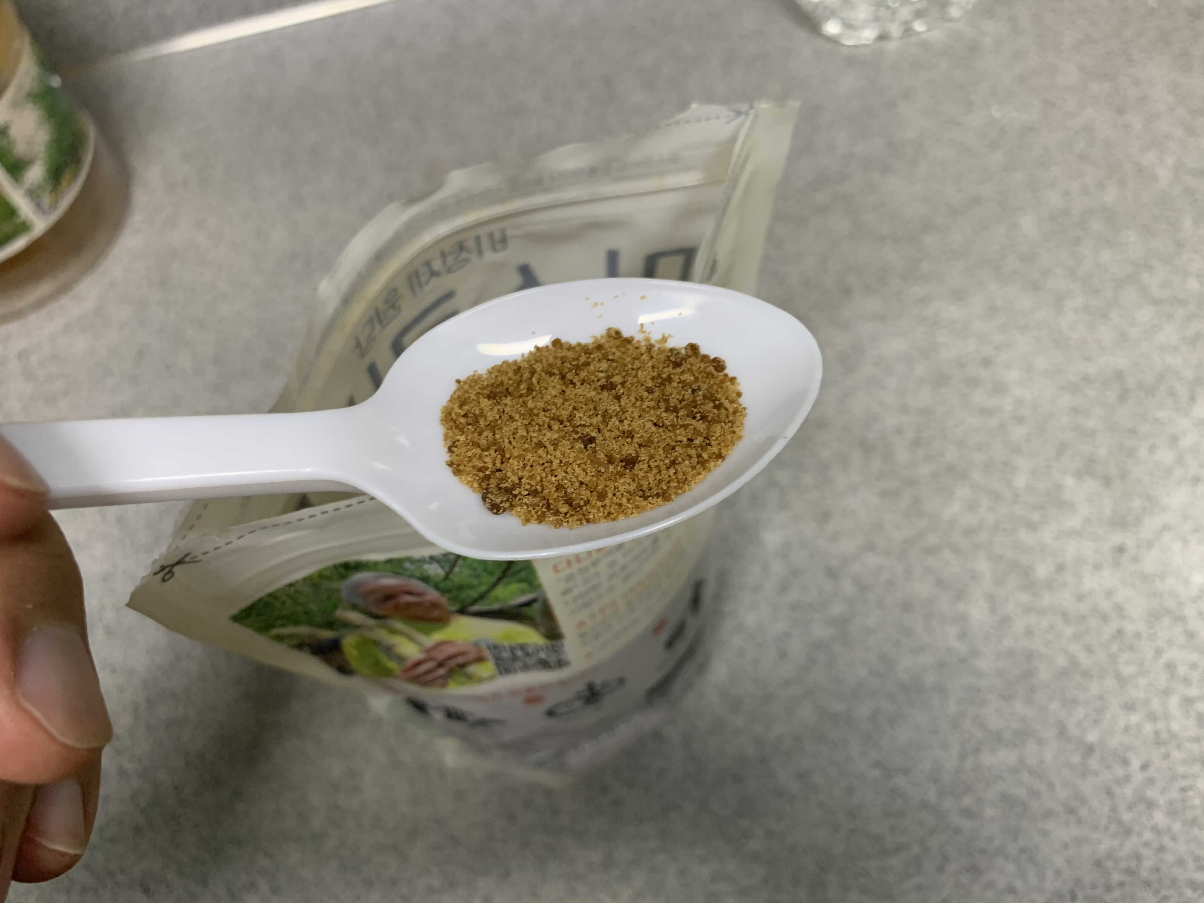 일반 설탕과는 결정모양이 다르게 먼가 식물을 빻아서 잘게 다져놓은 모습입니다. 색깔도 자연의 색으로 나온 흑갈색이구요.