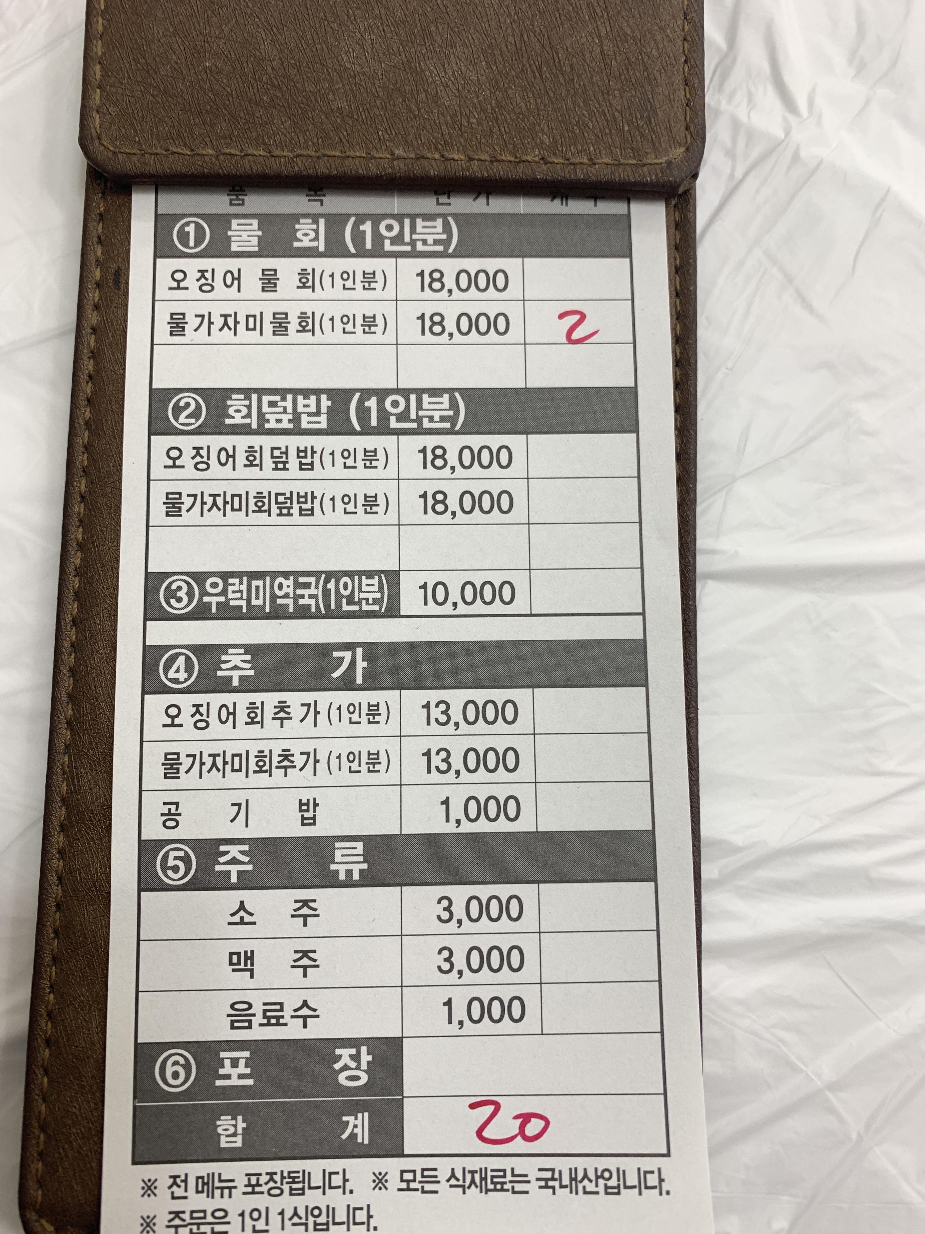 물회를 못드시는 분은 회덮밥(18,000원)도 있구요. 우럭미역국(10,000원)을 시켜서 드시면 됩니다.