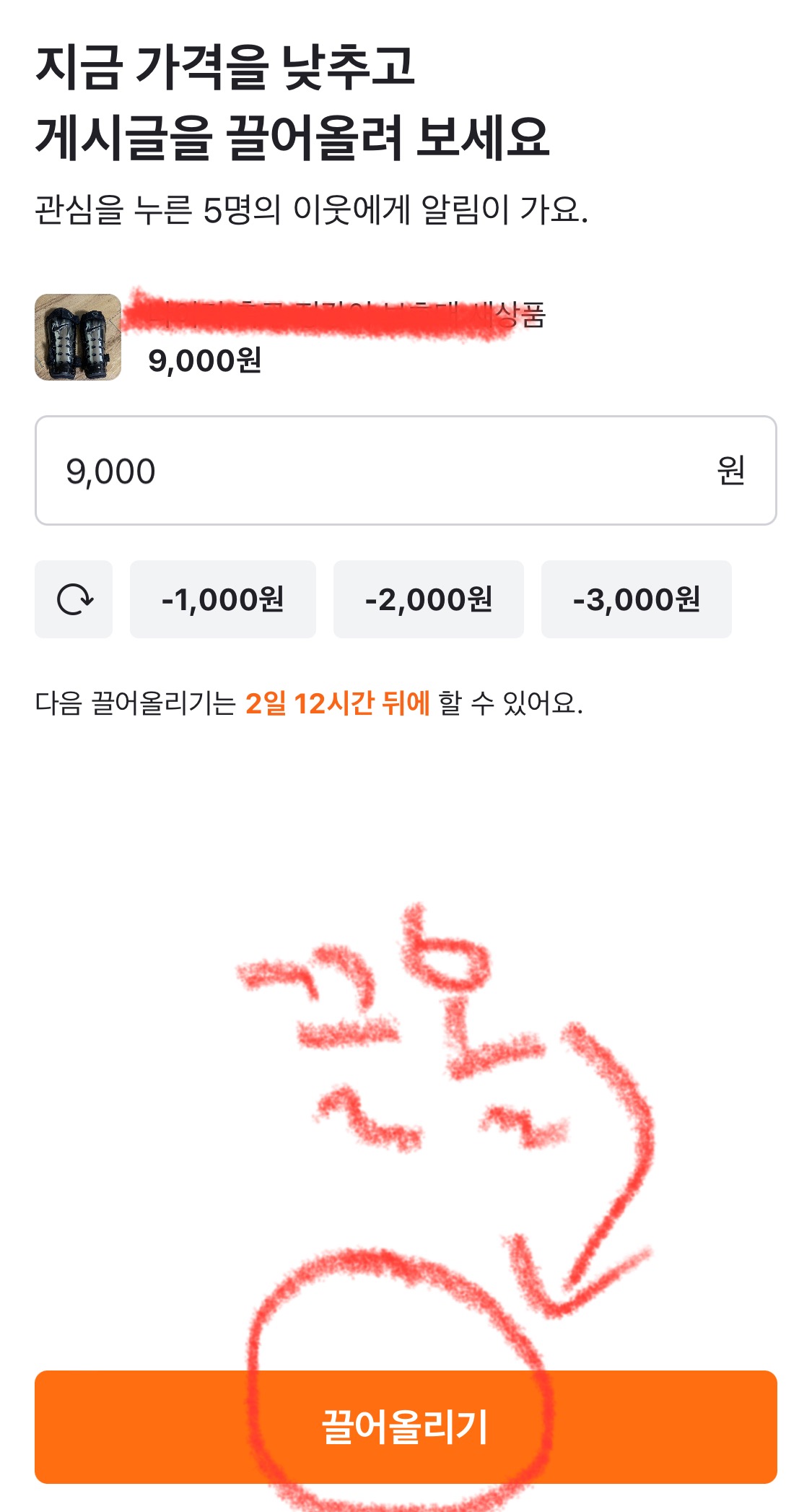 끌올은 게시글당 최대 15번까지만 가능하니 필요한 요일과 시간에 맞게 알맞게 활용하시면 물건을 빨리 팔 수 있으실 겁니다.