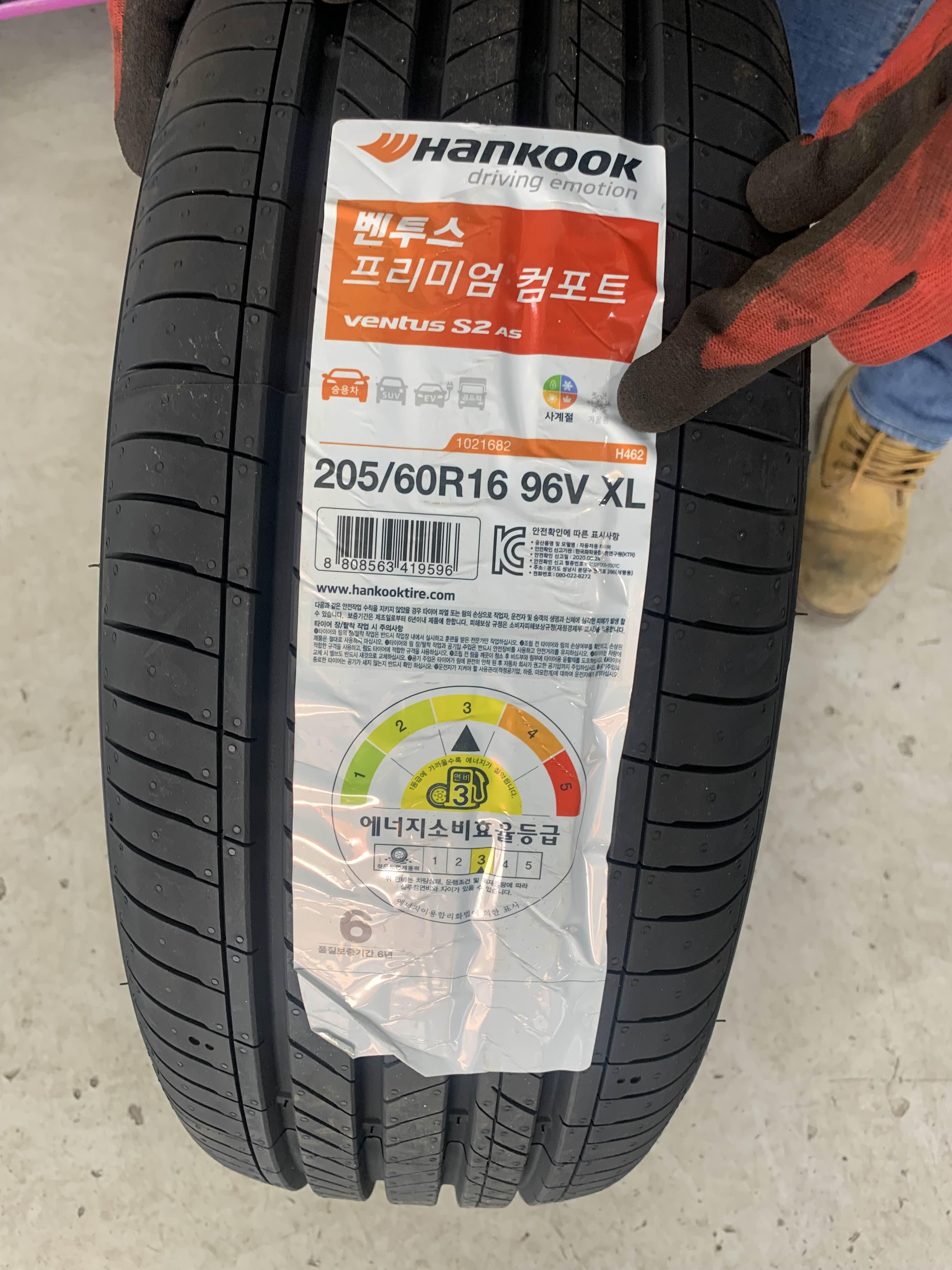 제가 구매한 타이어 모델명은 벤투스 S2 as 모델입니다. 이게 가성비있고 마일리지도 좋고 승차감과 소음모두 다들 만족하시는 모델이라고 하더라구요.