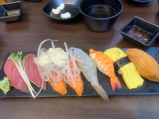 위에는 모듬초밥이구요. 참치 연어 새우 계란 유부로 구성이 되어있습니다.