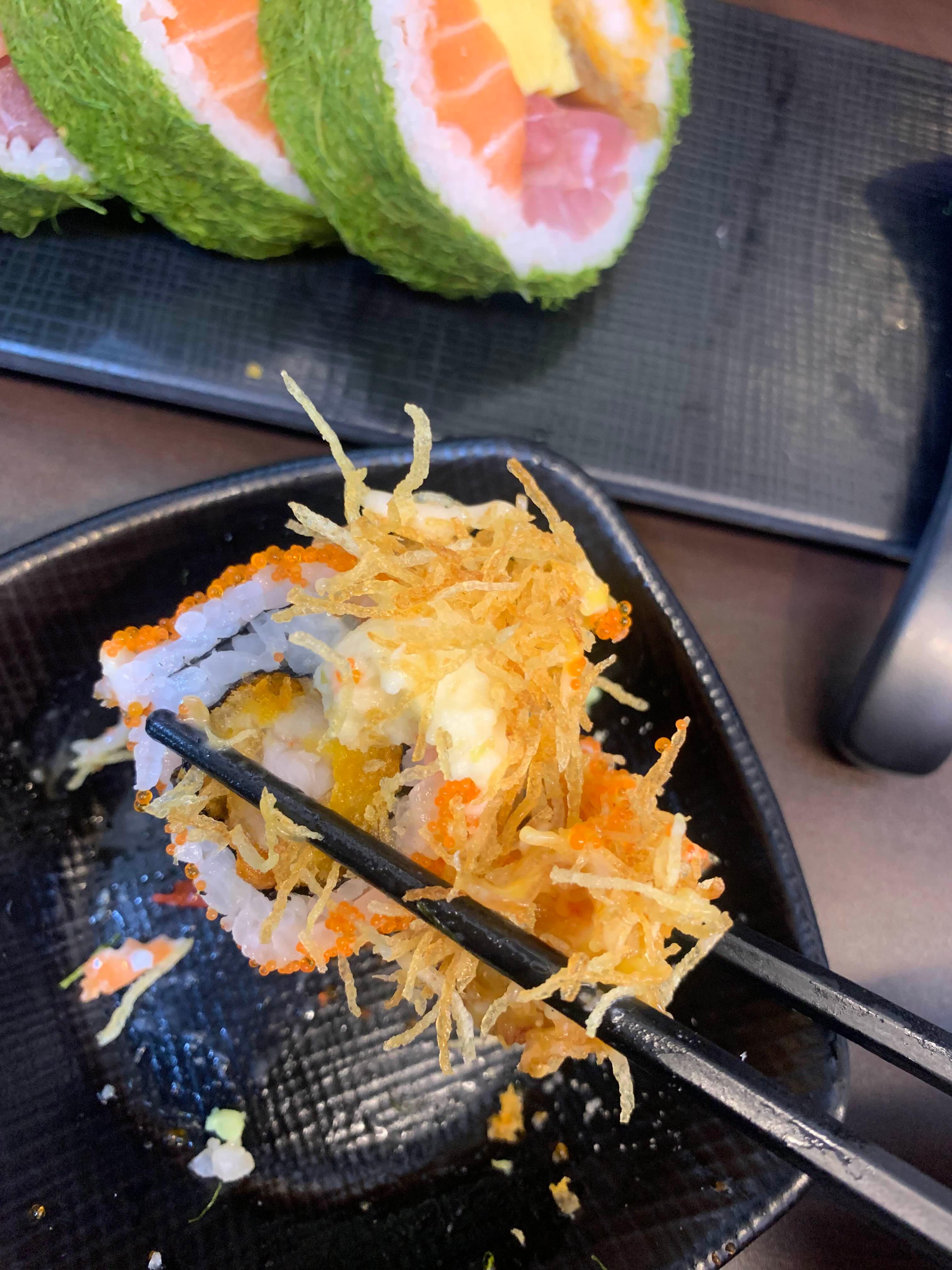 위에는 새우튀김롤입니다. 이것도 롤위에 튀김이 더 올라가 있어서그런지 식감이 바삭하게 맛있더라구요. ㅣ