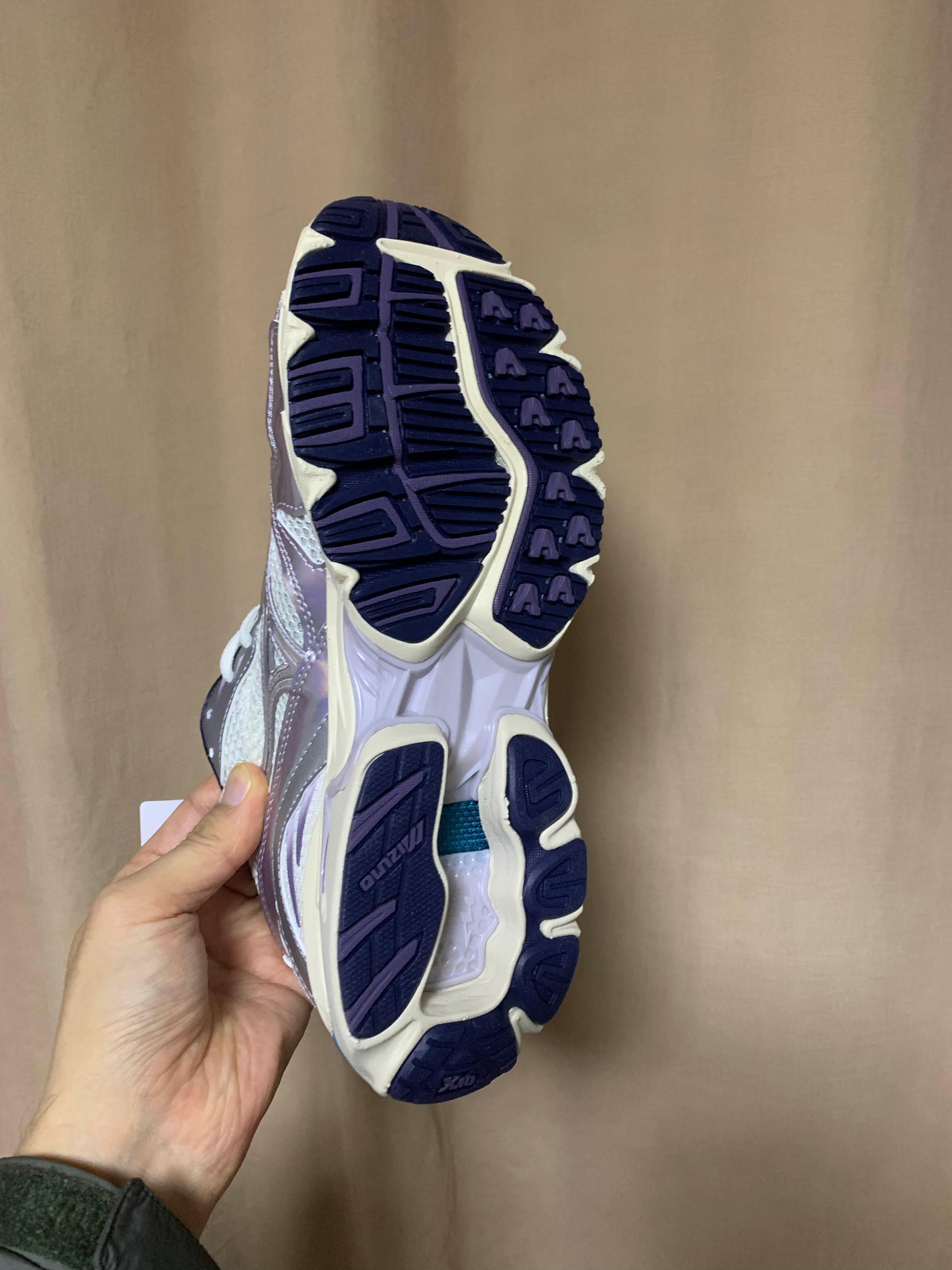 옆모습은 이렇구요 빛에따라서 미즈노 로고와 전체적으로 감싸져있는 어퍼가 연보라색이 변합니다. 미즈노 런닝화를 처음신어보는데 착화를 해보니 쿠션감이 진짜 좋고 가볍더라구요.