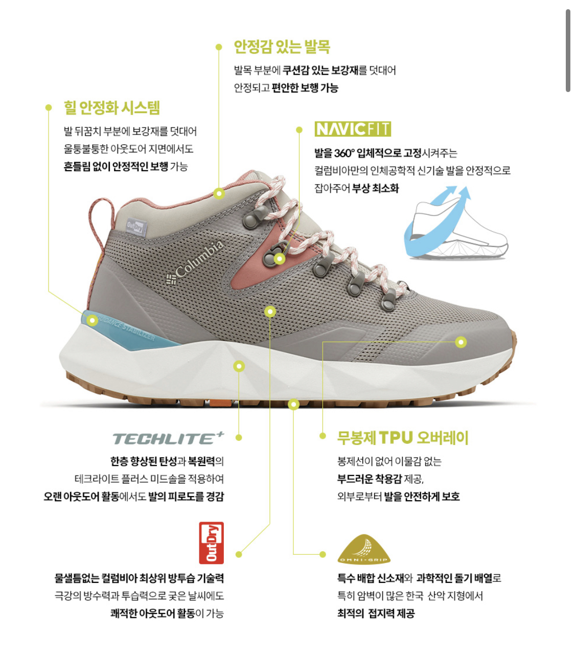 컬럼비아 신발이 국내 아웃도어 브랜드랑랑 다르게 다양한 아웃도어 기술력이 뛰어나고 가성비가 좋은게 장점인데요. 매번 기능들이 업그레이드되거나 새로 나오는게 신기합니다.