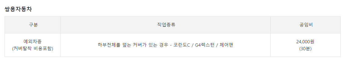 5. 쌍용자동차 KGM : 대부분 차량이 24,000원으로 책정이 되어있습니다.